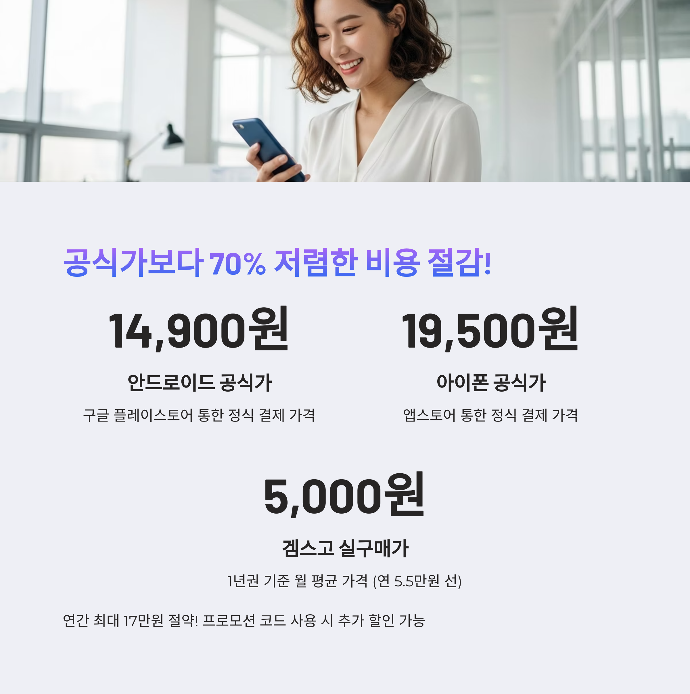 | 월 기준 | 14,900원 | 5,000원 | 66% ↓ |