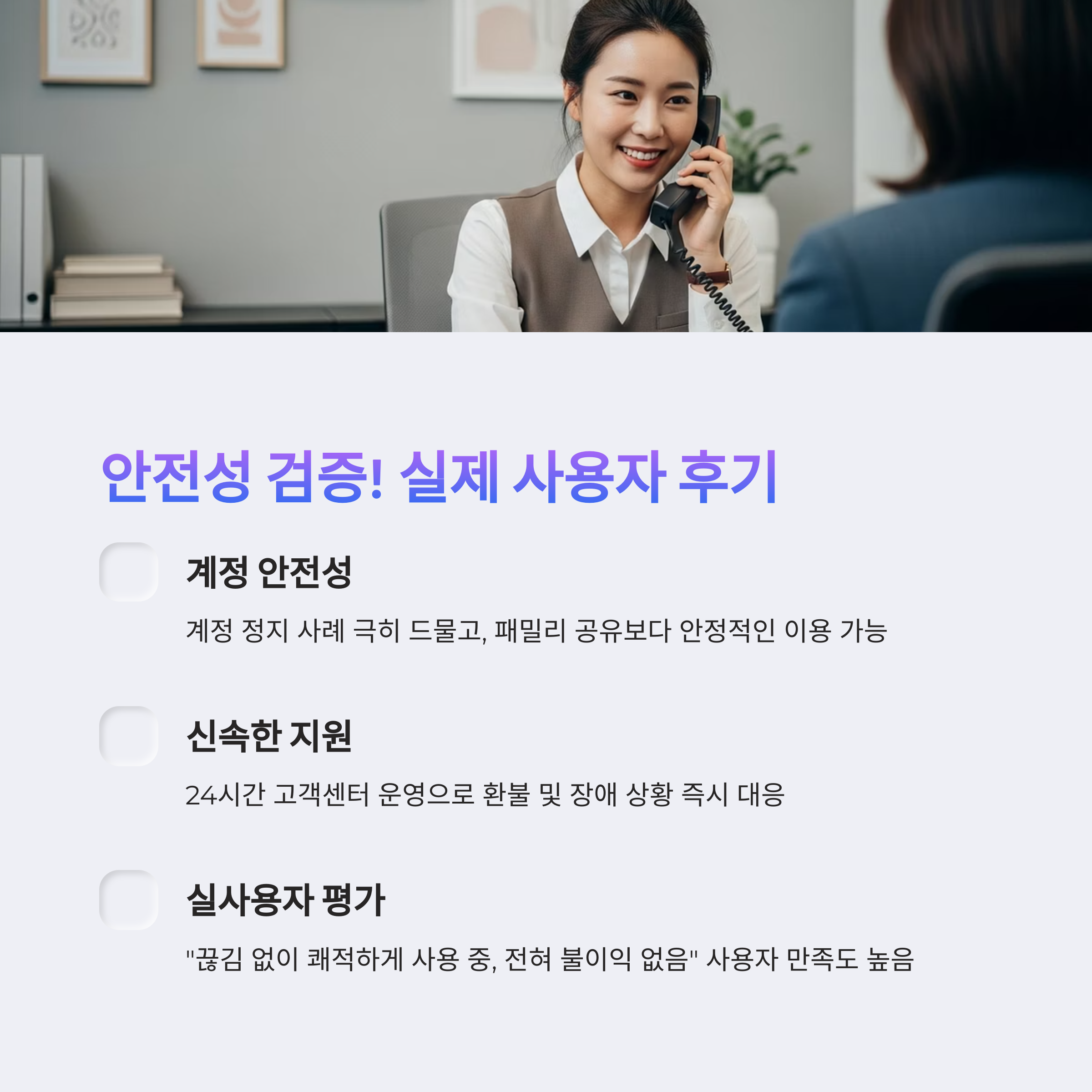 비밀번호 공유 없이 내 계정, 내 정보로 안전하게 프리미엄 혜택을 누릴 수 있어 많은 분들이 선호합니다.