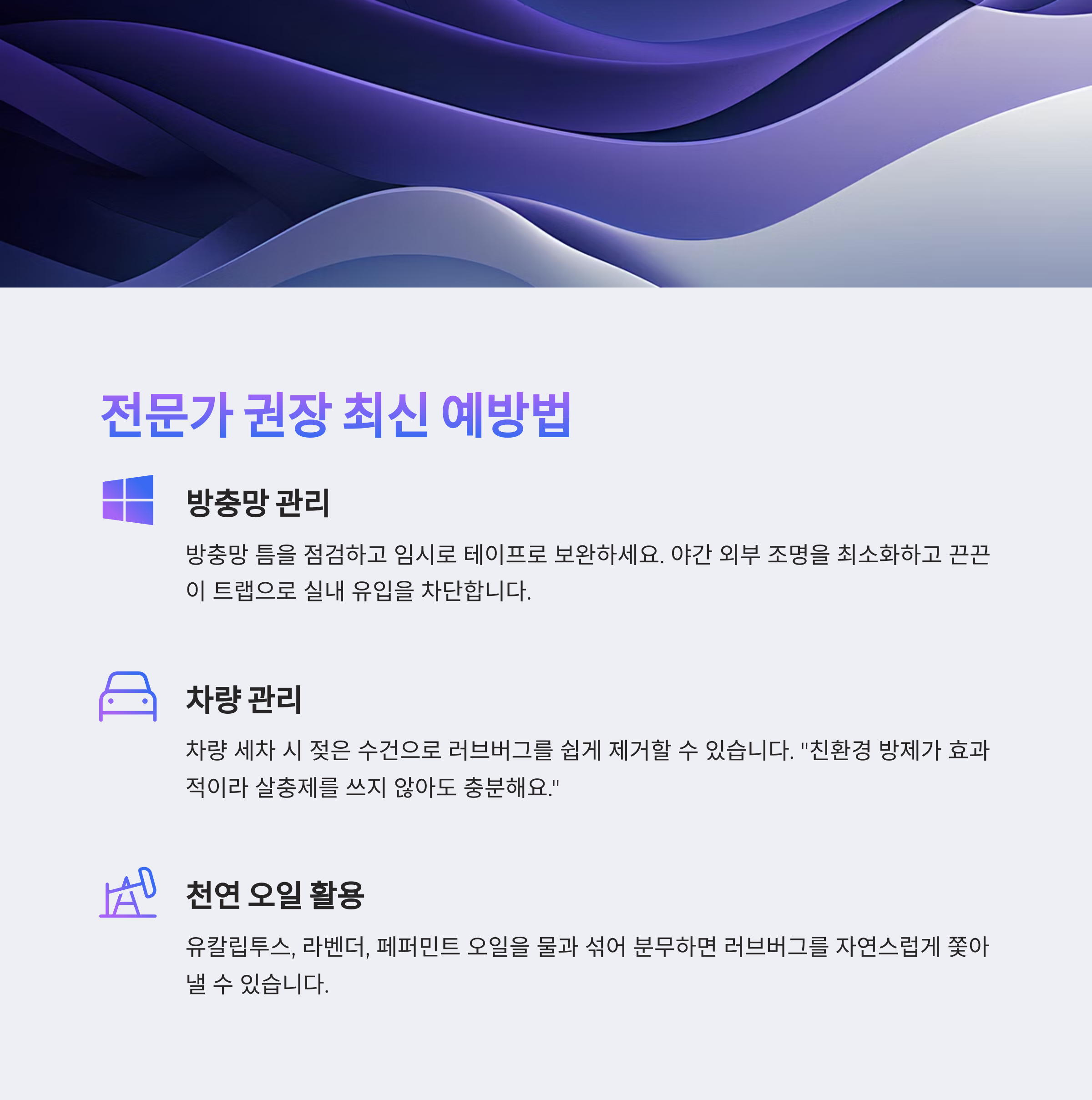 야간 불빛 최소화, 창문·출입구 실리콘 틈새 보수도 실전 예방의 핵심이에요.