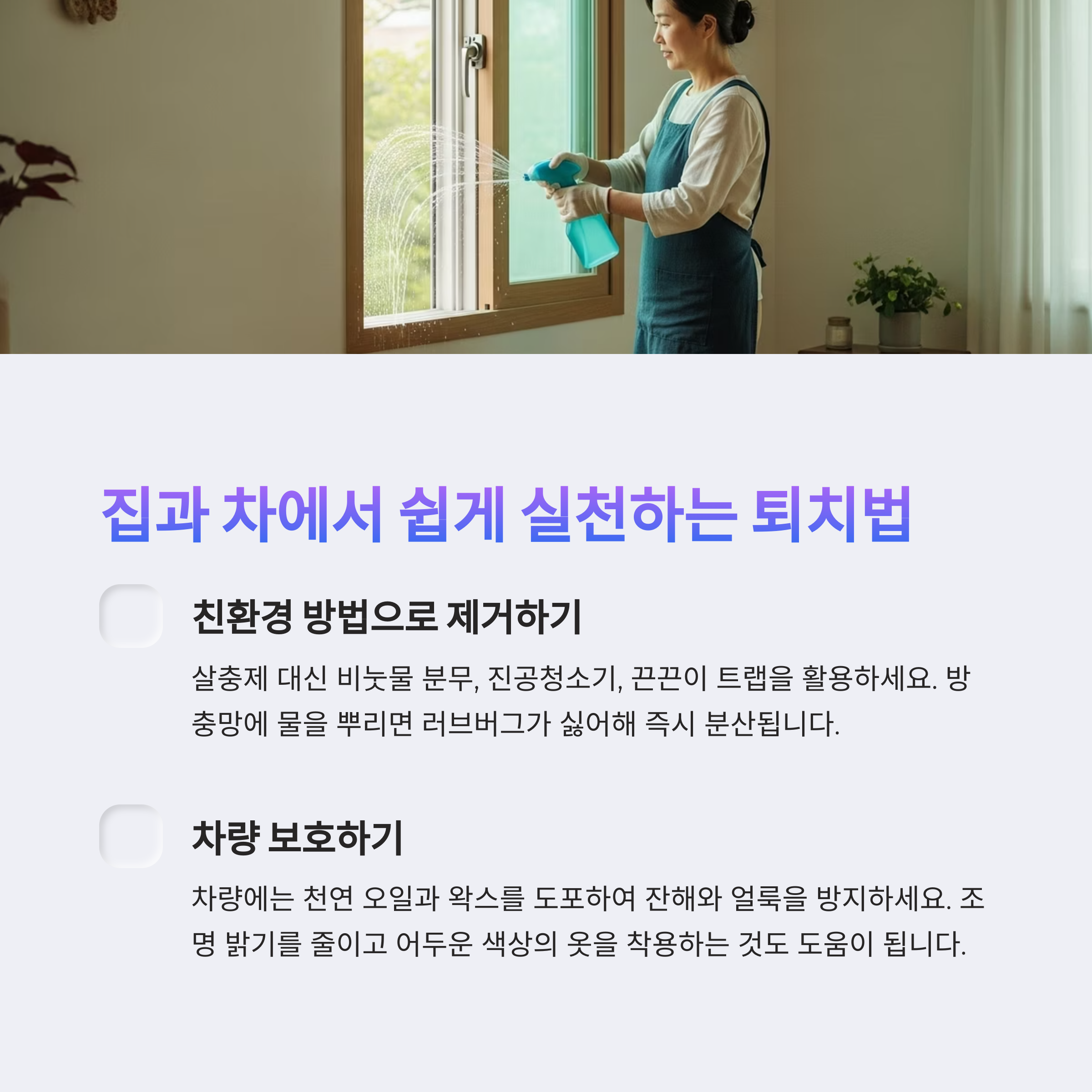 무심코 넘겼던 오해, 생활 속 실천법, 차량 관리까지! 이제 누구나 집에서 안전하고 쉽게 러브버그 걱정을 끝낼 수 있습니다.
