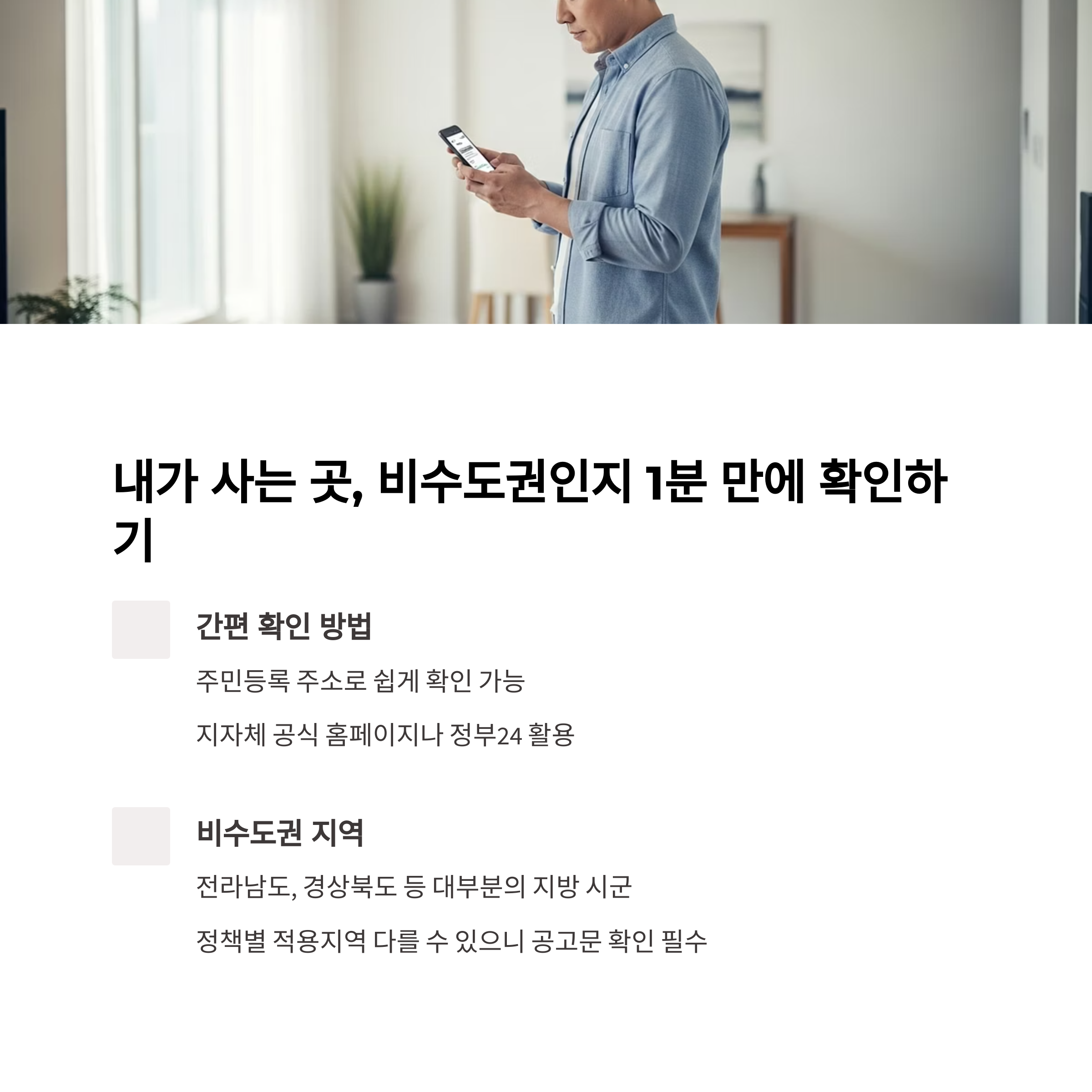 ✅ 정책별 공고문에서 내 지역이 '비수도권' 대상에 포함되는지 직접 확인했나요?