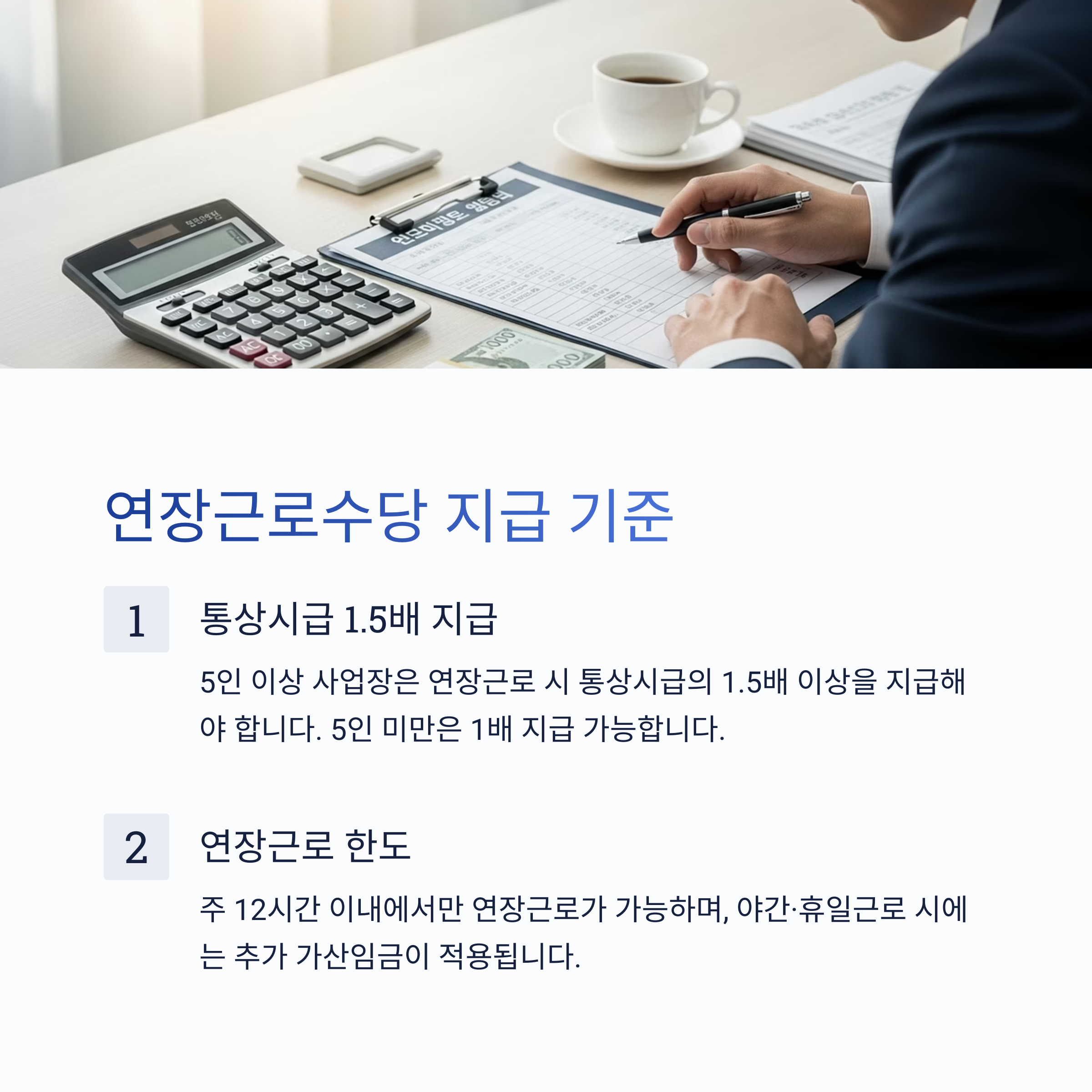 야간·휴일근로와 중복 시 가산율도 늘어날 수 있으니, 근로계약서와 사규를 반드시 확인하세요.