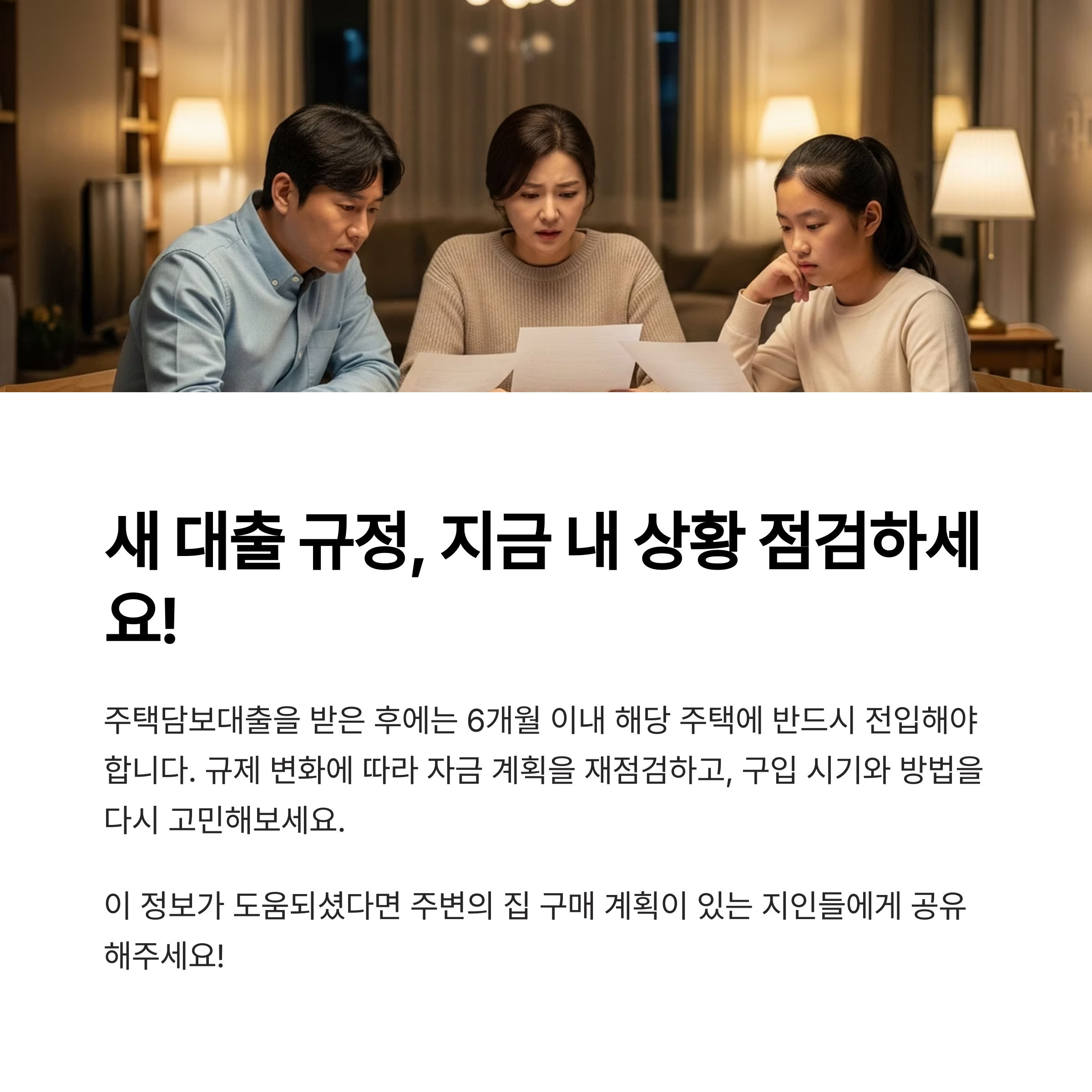 새롭게 대출을 받아 집을 구매할 경우, 반드시 6개월 이내 해당 주택으로 전입해야 합니다.