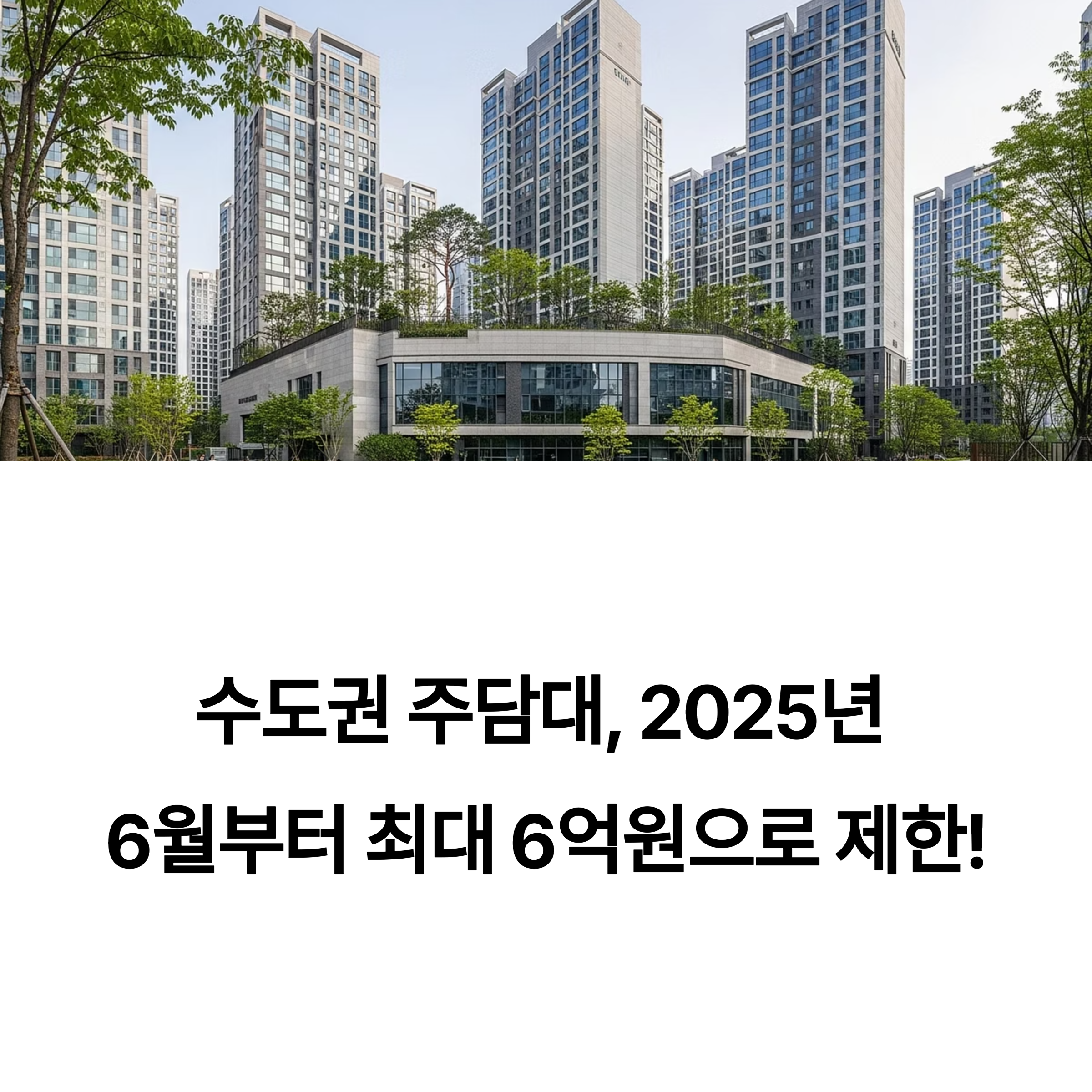 2025년 6월 28일부터 수도권 및 규제지역 내 주택담보대출(주담대) 한도가 6억 원으로 제한됩니다.