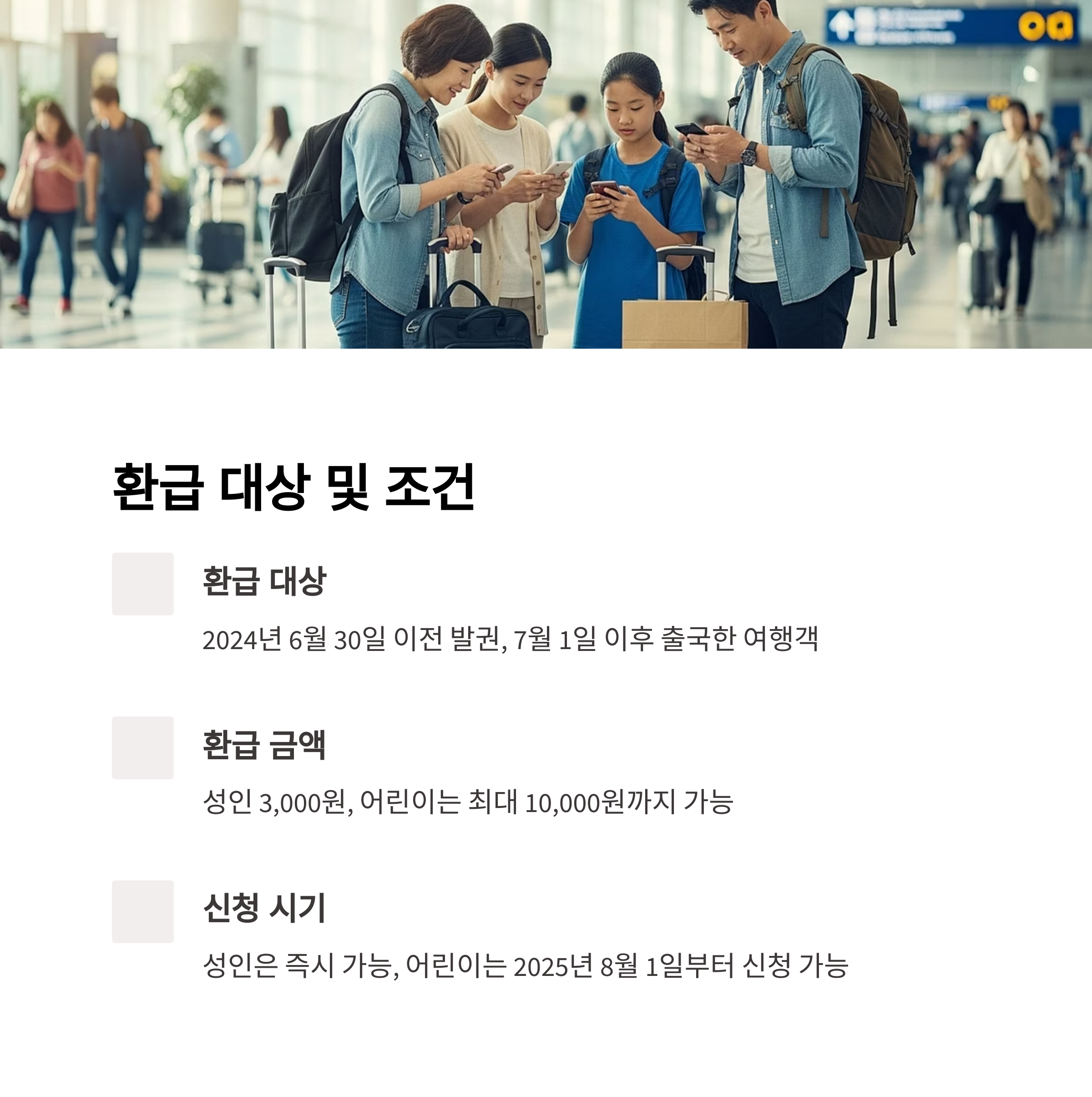 ✅ 성인, 어린이 모두 2024년 6월 30일 이전 항공권 발권 & 7월 1일 이후 출국 조건 충족 시 환급 대상