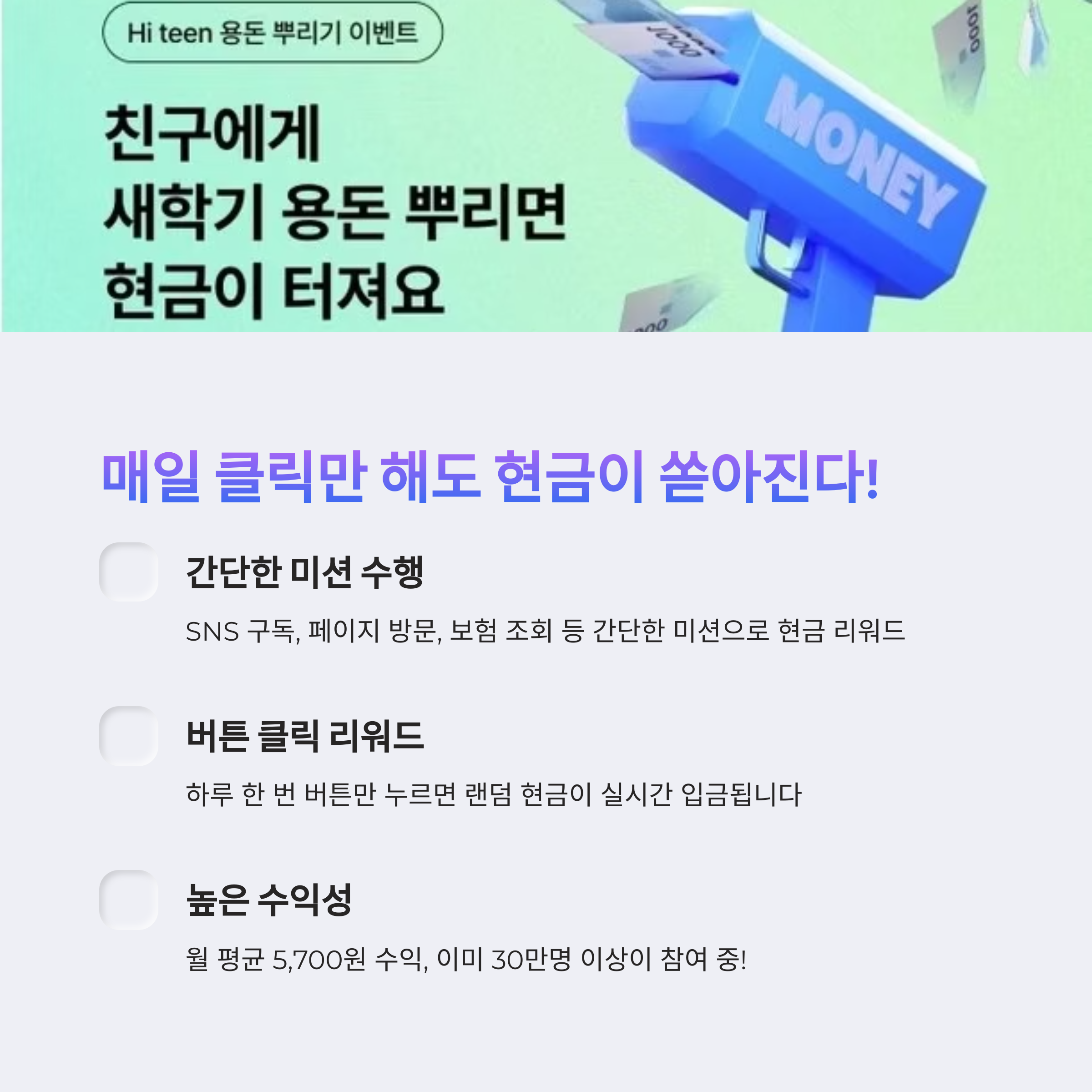“매일 5분 투자로 한 달 2~3만 원 용돈이 쌓여서 쏠쏠해요!”