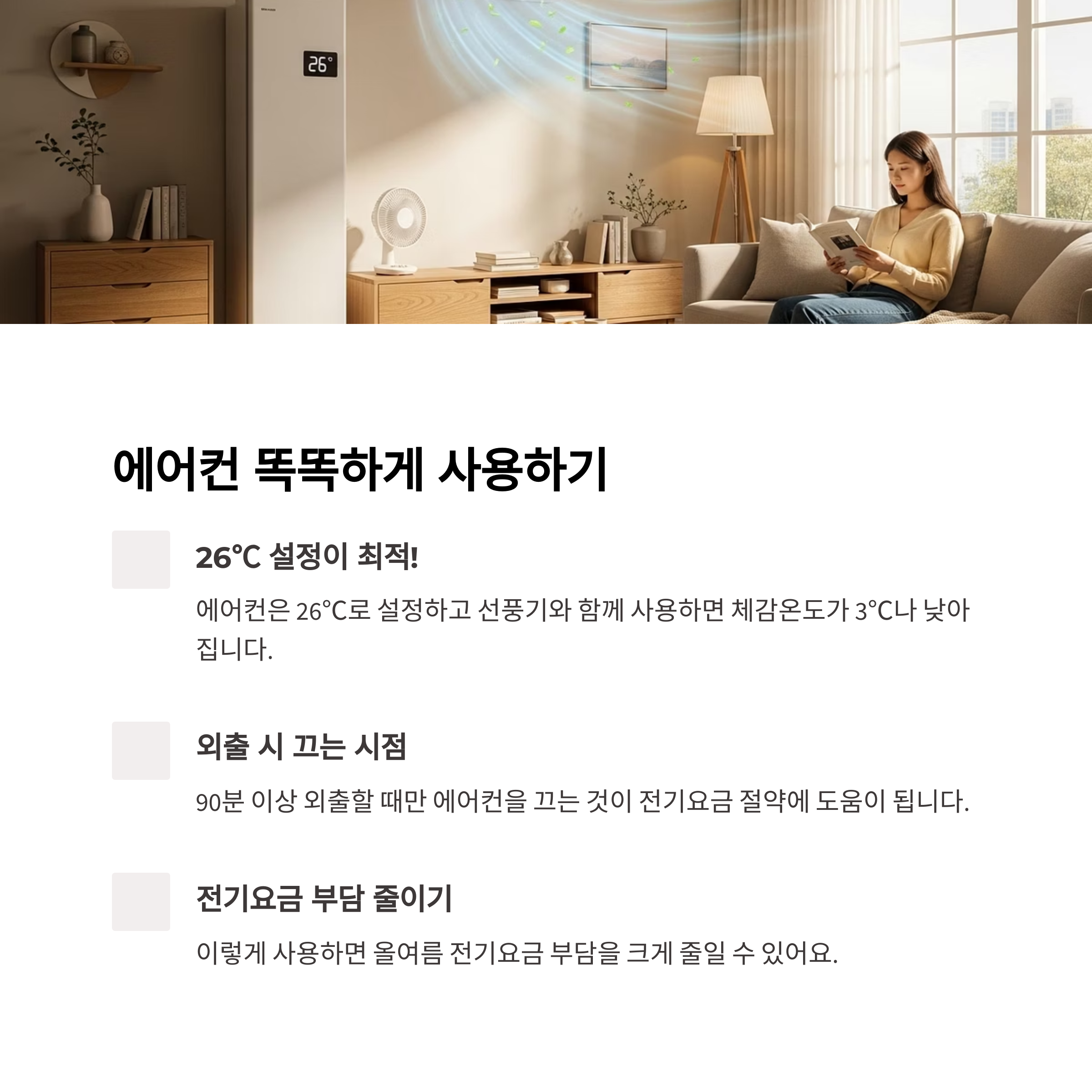 | 냉방기구 1대만 사용 | 선풍기+에어컨 병행, 효율적 냉방 |